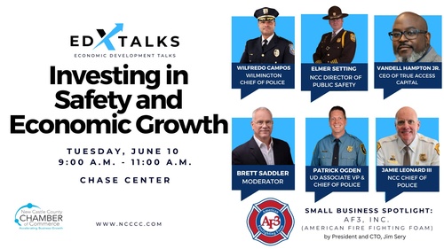 Join us for our next EDx Talk: Investing in Safety and Economic Growth on Tuesday, June 10, 2025, from 9:00 a.m. until 11:00 a.m. at the Chase Center.